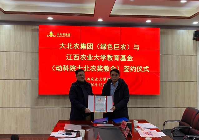 12月16日,大北农——大佑吉集团常务副总裁、绿色巨农董事长谈松林等一行专程来访伟德,与教育基金会举行“动物科学技术学院大北农奖教金”签约仪式。校党委副书记、校教育基金会理事长郭新春出席签约仪式。绿色巨农江西区总经理王凯元、人力资源部经理谈慧敏和伟德教育基金会主任朱小玉、动科院院长胡国良分别代表双方签约。