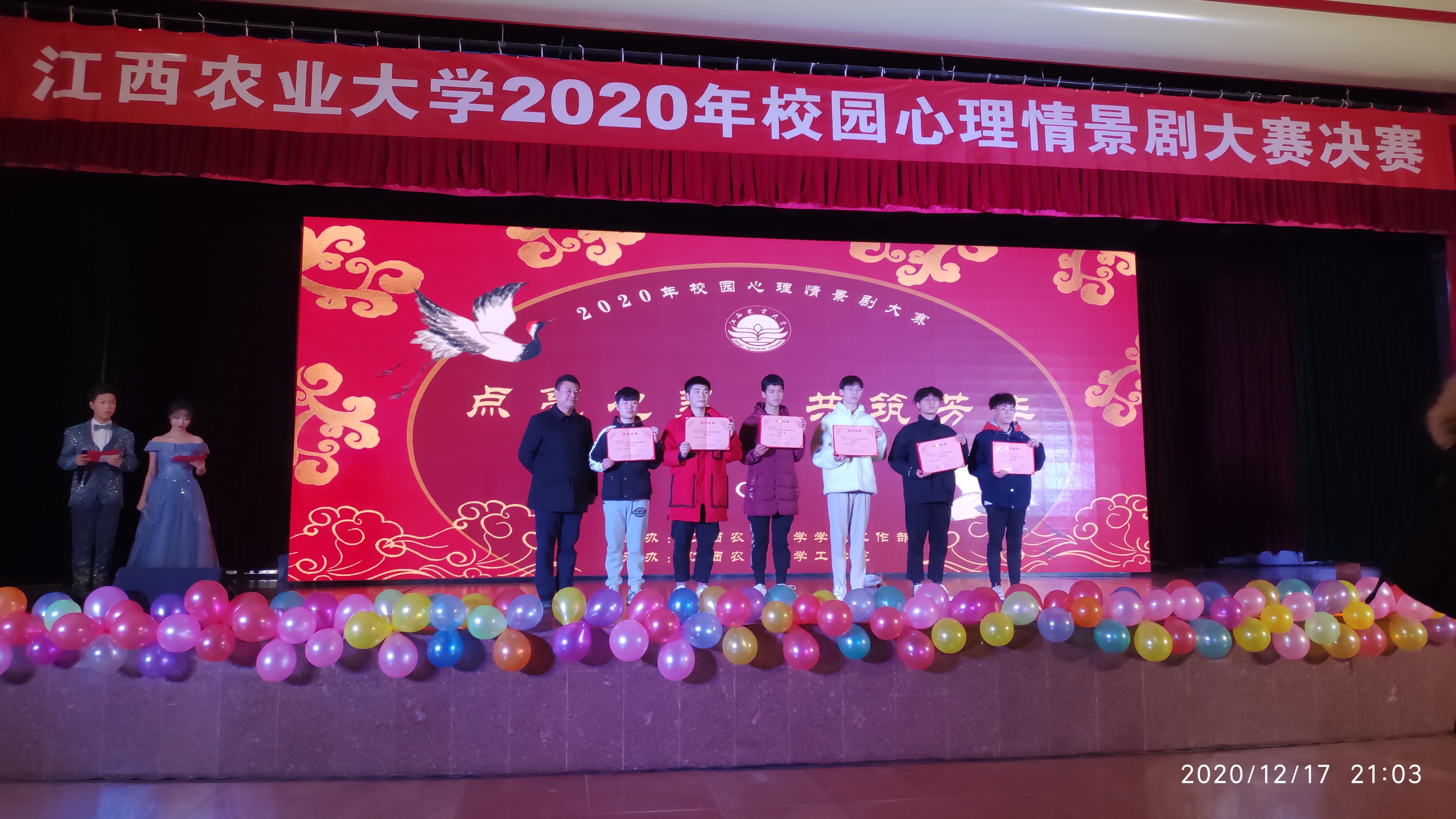 为了宣传和普及心理健康知识,培育学生自尊自信、理性平和、积极向上的健康心态,12月17日晚,由学工部(处)主办、工学院承办的2020年校园心理情景剧决赛在逸夫报告厅圆满落幕。