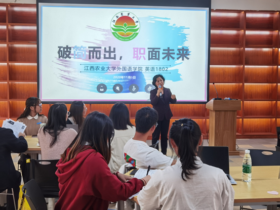 同学们以分组讨论、合作探究、学姐分享、评选最佳简历等的形式依次开展活动,与会老师精心指导本组成员对各自简历进行修改,同学们热情高涨、积极参与并票选出本场最佳简历。国家奖学金获得者商务英语1701班张怡斐结合自身经历,分享了校招的五个流程、简历制作的五个方法、七个模块及面试要点。
