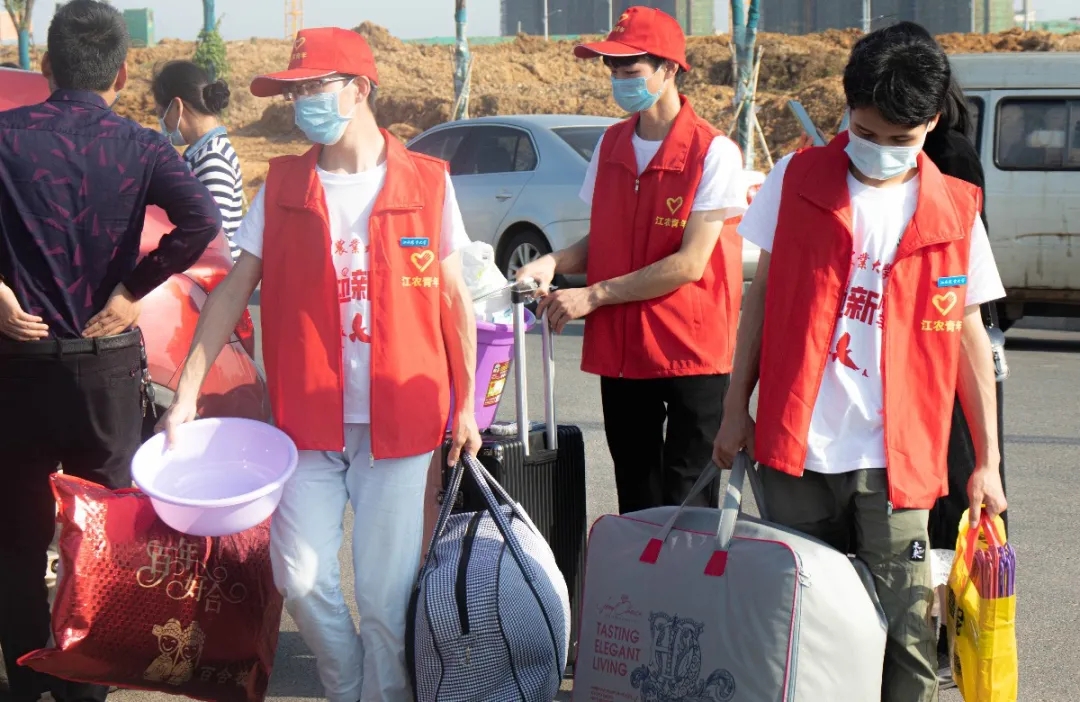 迎新当天,学院领导班子成员来到迎新报到点及新生宿舍看望慰问新同学,院领导对迎新工作人员及志愿者的辛勤付出表示了感谢,勉励新生要向抗击新冠疫情中涌现出的模范人物学习,要在强农兴农中展现江农青年担当。