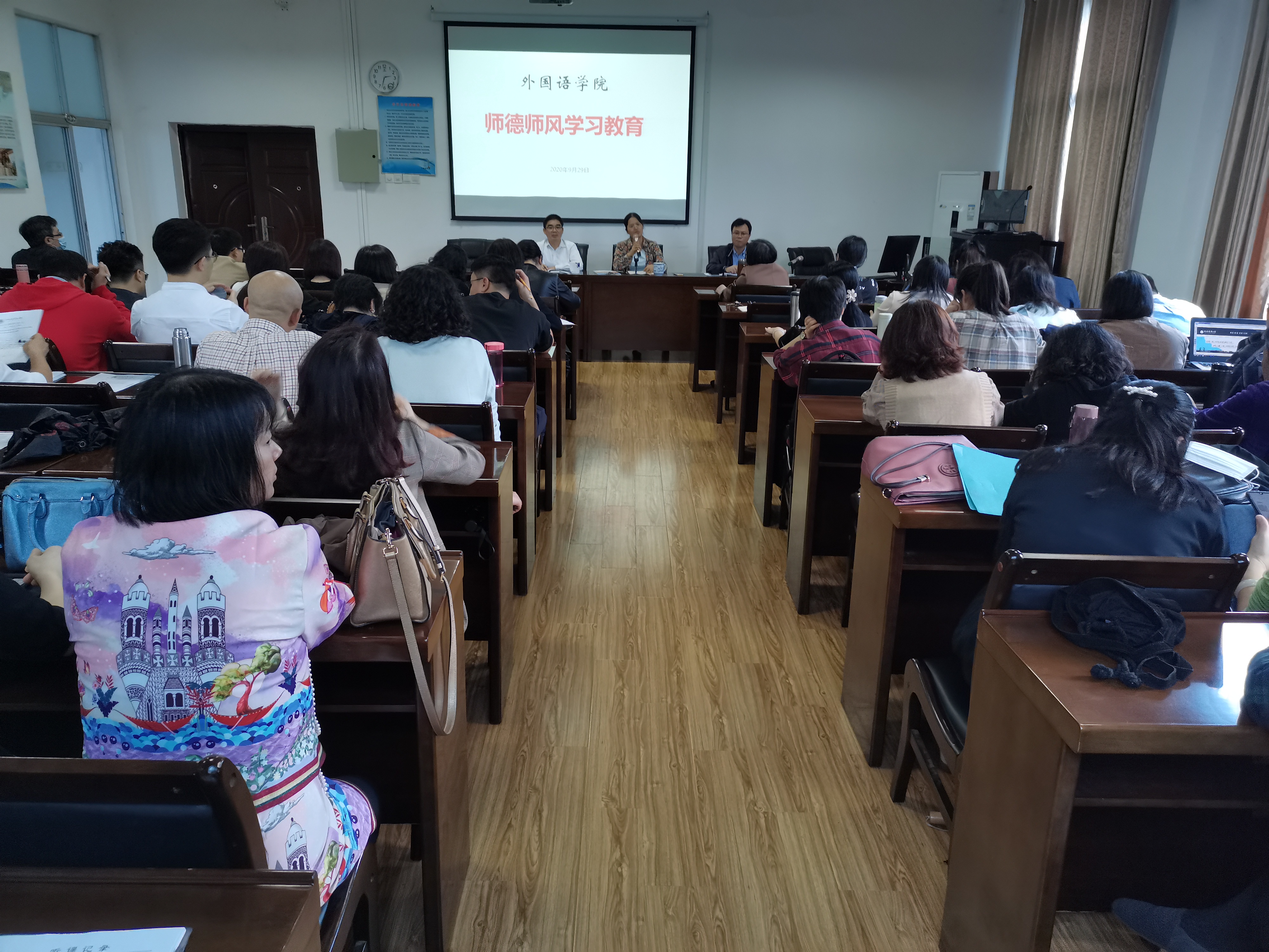 为进一步加强学院师德师风建设,9月29日下午,外国语学院组织召开教职工大会,专题学习师德师风有关规定和文件精神。