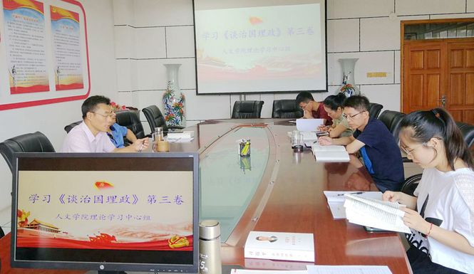 8月20日上午,人文与公共管理学院党委理论学习中心组在院办小会议室开展学习活动,专题学习《习近平谈治国理政》第三卷和《习近平总书记教育重要论述讲义》。与会人员在读原著、学原文、悟原理上下功夫,通过原原本本、原滋原味的学习,结合思想和工作实际,发言交流学习体会。会议由院党委书记杨峰主持。