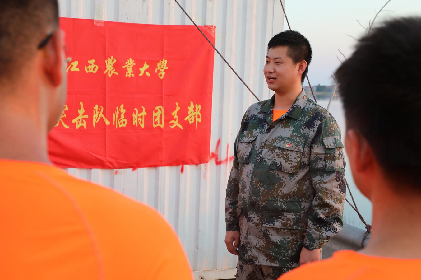 8月1日,是建军节。在鄱阳县的饶河联圩上,有一个身着“橄榄绿”迷彩服的青年小伙显得尤为突出。他叫刘阳,是伟德工学院的一名大四学生,曾在2016年9月应征入伍。“今天是建军节,我们给你过节日,你给我们讲团课!”青年突击队员王邦根率先鼓起了掌,微团课在热烈的掌声中开始了。