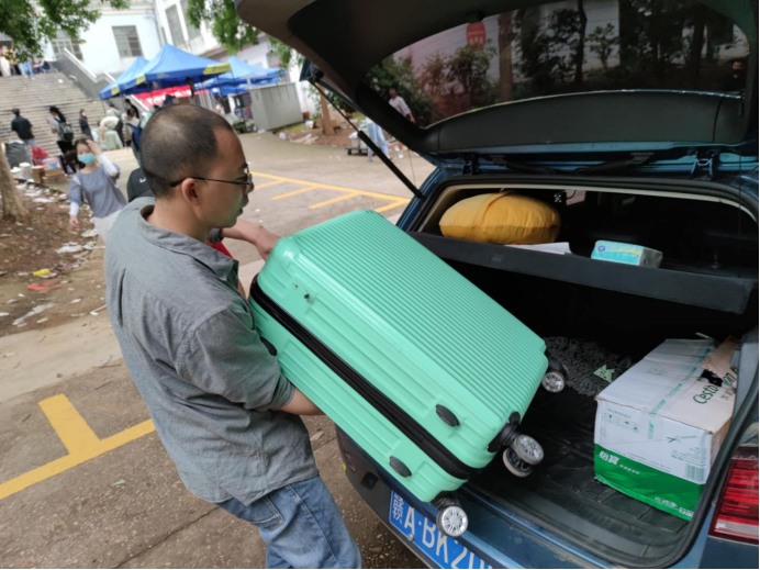 行李搬运,孩子们轻松,我们开心。“袁老师,南区5栋232龚俊莹同学需要帮忙搬运行李,请尽快过来一下。”这是“工头”丁颖老师给袁梁老师的电话内容。学生有需要,学院“友爱人文”临时志愿者队必定如约出现。这只由学工老师和毕业班学生党员、“下岗”学生干部组成的临时志愿者队伍穿梭于各个寝室,无论打包,还是搬运,无疑显现了新时代青年的担当与韧劲。学院党委副书记王志发亲自带头搬运物品,并勉励所有志愿者:“这才是真正的一家人,关键时刻靠得住,顶得住,希望各位志愿者在今后的学习和生活中发扬团结互助的精神,迸发关键少数的巨大力量,请迎风奔涌!”学生洋溢着轻松离校的笑容,我们很开心。