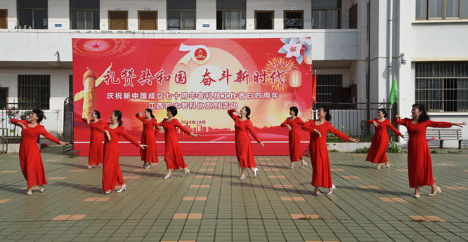 接下来,演出在大合唱《我和我的祖国》、《好日子》美妙的音乐旋律里拉开序幕。平均年龄83岁的老科协会员朗诵《庆贺祖国 祝福祖国》;与共和国同龄的老同志们合唱《今天是你的生日》,管理专委会献唱《爱我中华》;集体舞《走进新时代》,女会员们表演三步舞《我和我的祖国》,藏族舞《美了普达措》;双人交谊舞探戈《朝花夕拾杯中酒》,交谊舞《祝福祖国》,独唱《浏阳河》,《绣红旗》等节目丰富多彩,形式多样。最后全场人员起立,高唱《歌唱祖国》,在歌唱祖国,赞美祖国的歌声中,活动达到高潮,整个演出过程气氛热烈,精彩纷呈。现场人员始终以饱满的政治热情观看,并表达了我们老科技工作者要继续不忘初心,牢记使命,奋斗新时代,谱写新篇章!