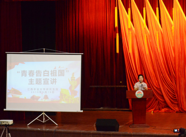 今年是新中国成立70周年,为教育引导研究生深入学习贯彻习近平新时代中国特色社会主义思想,厚植爱国情怀,激发报国之志,自觉砥砺意志品质、涵养道德修养、练就过硬本领,争做担当民族复兴大任的时代新人。研究生院团总支招募研究生宣讲团队,以赤子之情、青春之名、奋斗之行动向祖国告白。