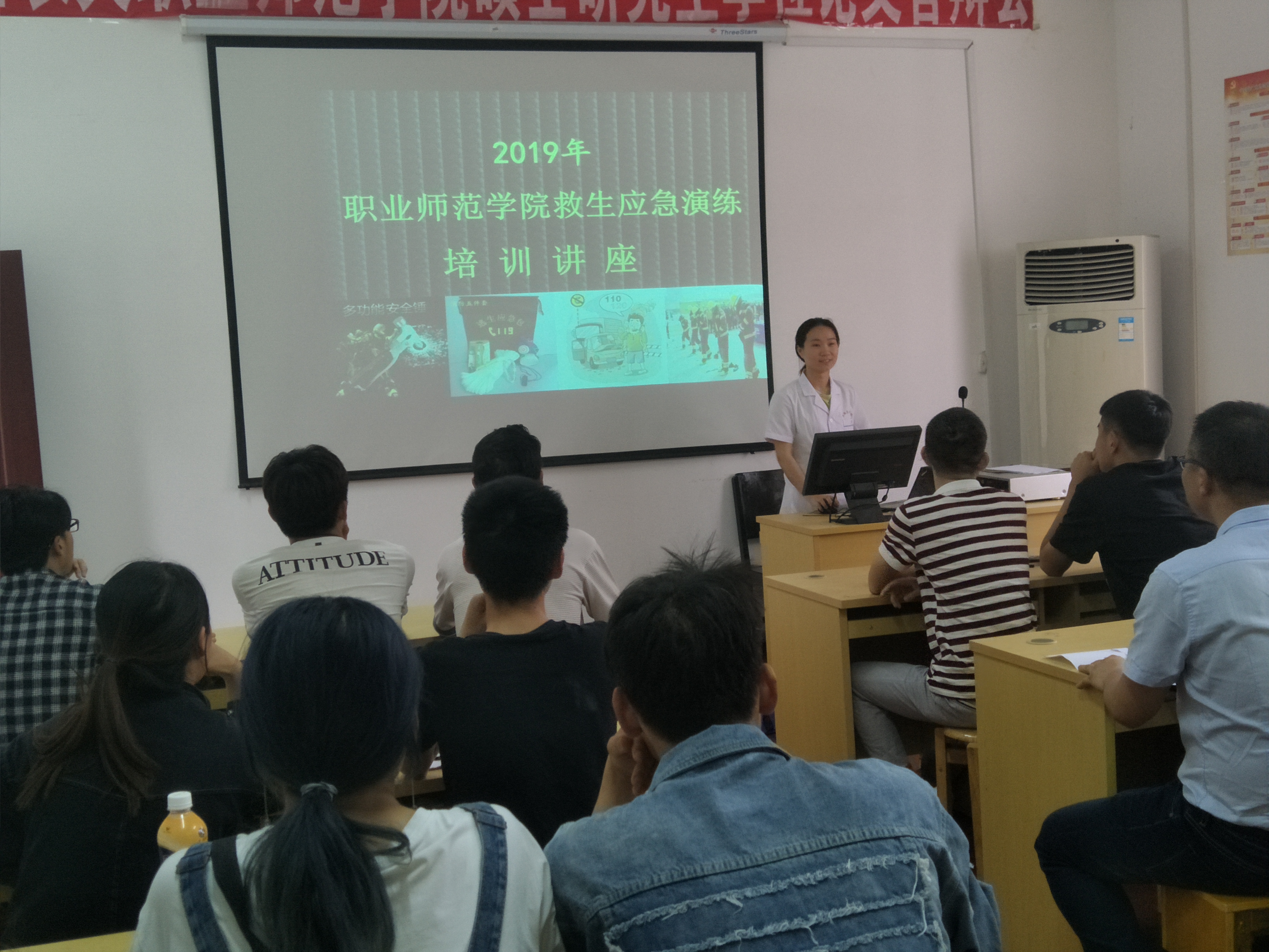 为加强师生生命安全教育,提高广大师生的应急处置能力,近日,职师院联合校医院组织开展救生应急演练培训活动,邀请校医院李思思医生为师生们作培训讲座。