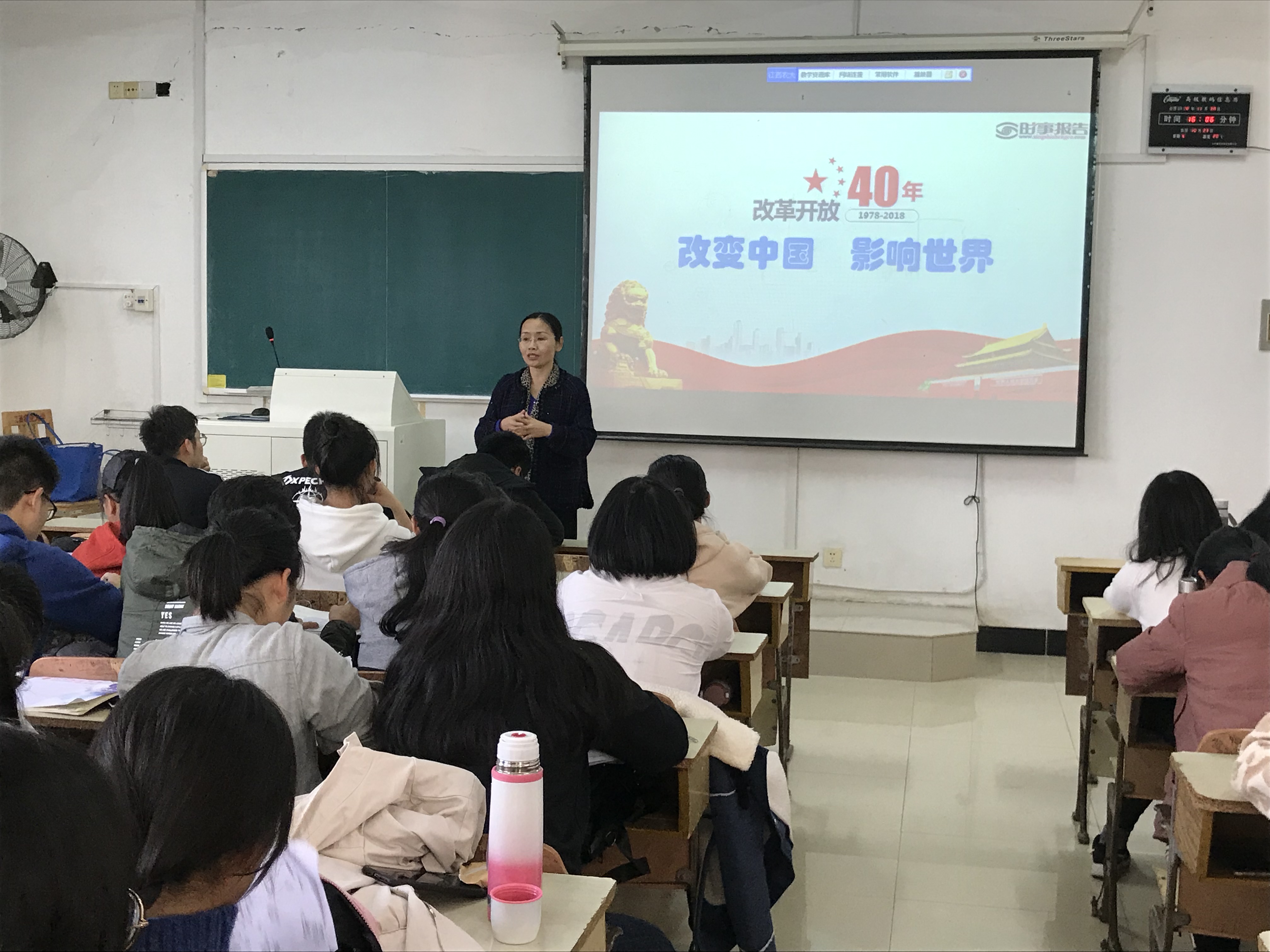 肖友群主讲的是改革开放40年来对中国和世界的影响,吴伟萍讲授的是今年9月份的全国教育大会精神。重点讲授和学习新时代党的建设面临的新形势新任务、总要求和战略部署、坚定理想信念是青年人思想建设的首要任务等内容,并不时互动讨论。