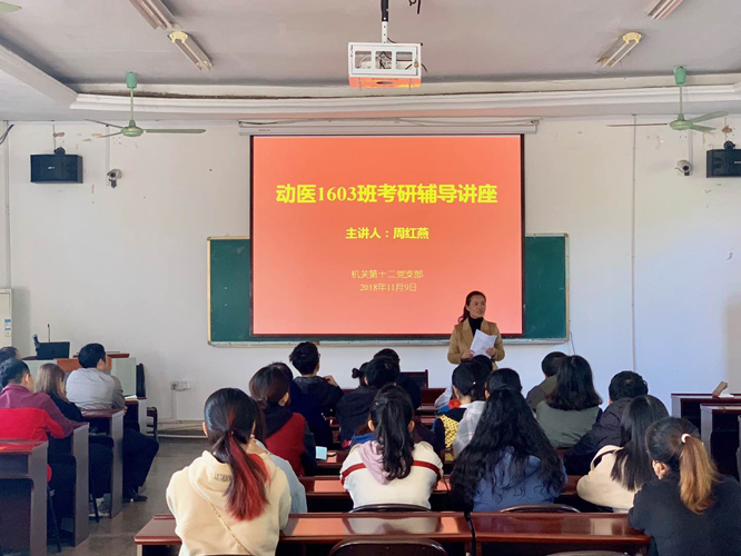 辅导讲座由支部委员周红燕同志主讲。她结合自身多年从事研招工作的体会和大学生考研实例,从考研形势、考研目的、考研抉择、考研备考等几个方面做了详实而生动的讲解,并着重介绍了伟德研究生招生录取的相关情况,鼓励同学积极报考本校研究生。