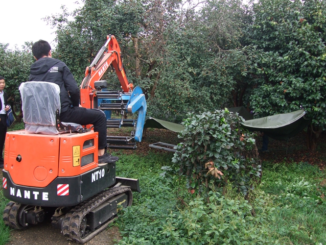据悉,该油茶果采摘机采用履带式底盘,可在园艺化种植的缓坡油茶林里行走和作业,采摘头由液压马达驱动,通过上、下两组辊相向旋转喂入和采摘油茶果,采摘效率高,每分钟均采果30个以上,且漏采率和花苞损伤率均较少。采摘后的油茶果由收集伞汇集进入收集框。