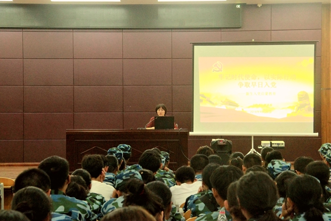 报告中,院党委副书记廖述香以“牢记时代使命,以实际行动争取早日入党”为主题,阐述了当代大学的历史使命,激发广大青年要将自己的理想目标同国家的前途命运紧紧结合起来,努力学习,锻造本领,为成为新时代中国特色社会主义合格建设者和可靠接班人打下坚实基础。她还叮嘱新生要把握正确的人生方向,提出加入中国共产党是当代大学生的最佳政治选择。并向新生们讲解了入党条件、加入党组织的基本流程、入党申请书的格式及要求。廖述香希望同学们端正入党动机,坚定共产主义远大理想和信念,向身边的先进典型学习,积极参加各种活动,热心服务同学、奉献自己,以实际行动争取早日加入党组织。