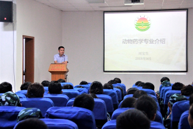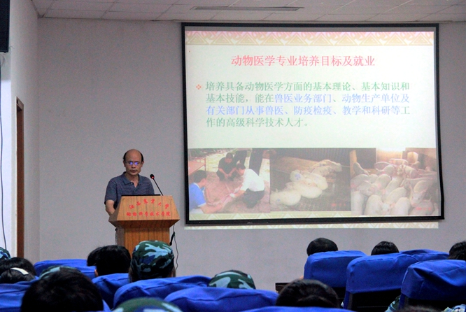 院长胡国良代表学院对2018级新生表示热烈欢迎,向新生详细介绍了学校百年校史、学院八十年发展历程和教学科研、杰出校友等情况,鼓励新生要秉承优良院风,早日规划好人生目标,刻苦学习,为做社会有用之才打下坚实基础。舒邓群教授、邓舜洲教授、刘宝生副教授和熊六凤副教授分别代表动物科学、动物医学、动物药学及水产养殖学四个专业,从师资队伍、教学实践、学科建设、专业前景、兴趣小组活动等方面进行了详细介绍。