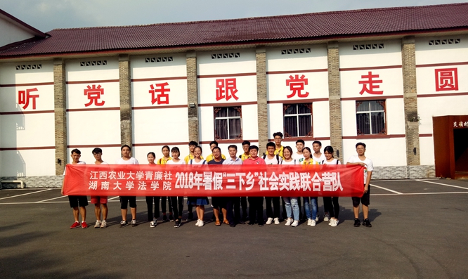 7月11日至7月17日,伟德青年廉洁社联合湖南大学湖湘廉风学社首次组成校际联合实践营队,赴江西宜丰县开展暑期“三下乡”社会实践活动,双方通过合作实践活动,既丰富了社会实践内容,又进一步促进了校际交流。