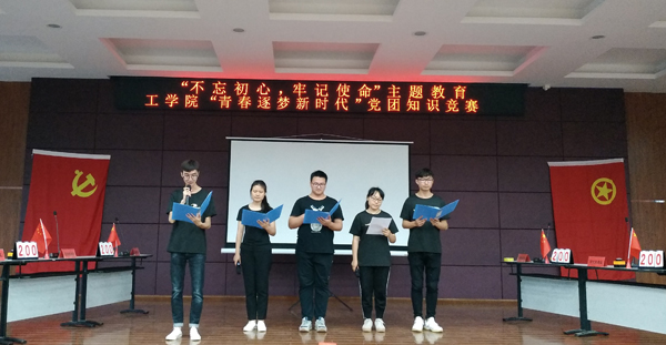 为进一步学习习近平总书记在北京大学师生座谈会上的重要讲话精神,促进大学生对党团基本知识的了解,增进对党的感情,树立“听党话、跟党走”的政治信念,5月4日,工学院在大学生活动中心举办了“青春筑梦新时代”党团知识竞赛。