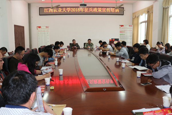 为响应国家对大学毕业生应征入伍的号召,积极鼓励和引导大学毕业生投身军营,提高伟德毕业生应征入伍的热情和参与度,增强毕业生对相关政策的认识,4月13日上午,招生就业处、军体部组织安排了伟德2018届毕业生应征入伍征兵宣传活动,邀请青山湖区人武部部长万志军进行政策宣讲,伟德各学院从事就业工作辅导员及部分毕业班班主任代表共40余人参加。