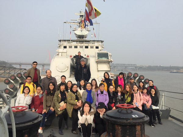 为深入推进“两学一做”学习教育常态化制度化,加强习近平新时代中国特色社会主义思想的理论指引,进一步增强党组织的凝聚力和战斗力,切实发挥党员的先锋模范作用,形成党员人人讲奉献、有作为的良好氛围,12月5日下午,外国语学院教工党支部与学生党支部党员一行前往位于赣江凤凰洲市民公园的“南昌舰”,开展“两学一做”第四专题暨12月党员活动日活动。