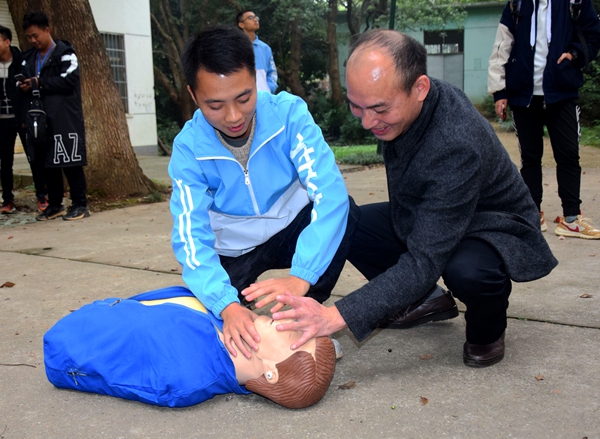 在普及“心肺复苏”技能活动中,校医院瞿运秋医生为师生讲解“心肺复苏”基本知识,现场示范动作要领,指导师生操作练习了“心肺复苏”技能。