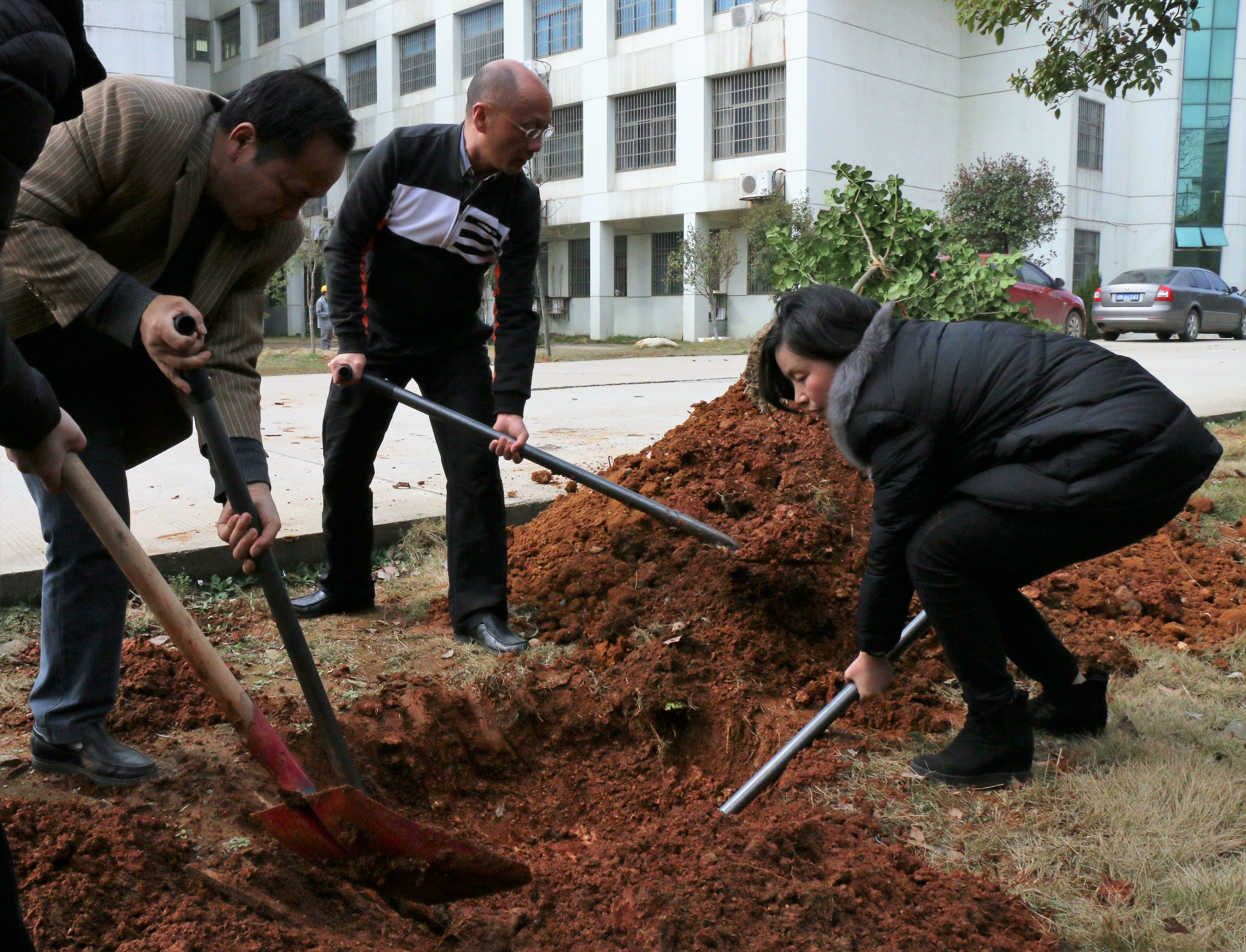 阳光普照,春风和煦。大家干劲十足,挖坑、锹土、施肥、移栽,互相配合、共同努力,近2小时共种植茶花、无刺枸骨等树苗近20棵,党员干部以身示范、发挥带头模范作用,提升了美化校园环境的责任感。