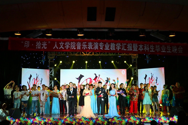 本次晚会在《卡农》优雅的琴声中拉开序幕,接着群舞《good boy》更是引起现场观众的欢呼。层出不穷的节目,表演者们各展所长:舞蹈、歌曲、小品、合奏等面面俱到,为大家带来了一场视听盛宴。当晚,音乐表演1201班班主任季晶老师作为神秘嘉宾上台献歌,深情的演唱中传递着浓浓的师生情谊,打动了现场每一位观众。最后,一曲《给所有知道我名字的人》将离别的气氛推向高潮,晚会在老师们的祝福与期冀、毕业生们的留恋与不舍中圆满结束。(人文院王静静 赵干 陈杰)