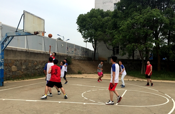 5月18日,外国语学院19个基层团支部篮球赛举行,拉开“三走”活动的序幕。场上队员们个个雄姿英发,展开激烈比拼,全场的欢呼声一波接着一波。场下啦啦队为队员们呐喊助威,现场的气氛十分活跃。(外语院)