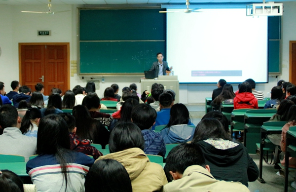 唐东堰博士为同学们介绍了拜伦、梵高、贝多芬和沈从文等几位在艺术领域的天才人物,并提到遗传自家族的疯狂基因对他们在艺术方面的发展有着深刻的影响。唐博士以其风趣幽默的语言、生动形象的讲述赢得了在场同学们的阵阵掌声。(人文院 林枫 郑满琳)