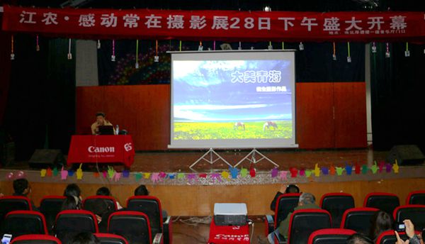 现场共设两个展棚、两名模特及十余台佳能单反相机供学生使用,期间广角镜头的运用深受同学们的喜爱,使同学们更好理解摄影。活动还邀请中国摄影家协会理事周梅生老师摄影专题讲座,周老师分享了自身的摄影经历,向同学们展示了《大美青海》系列摄影作品突出体现摄影的独特魅力并以“一半书房,一半路上”的理念释对摄影的追求。(人文院 程磊 韦汝铮 胡婷)