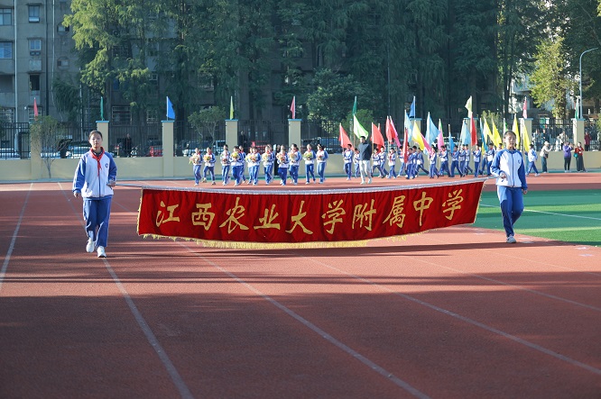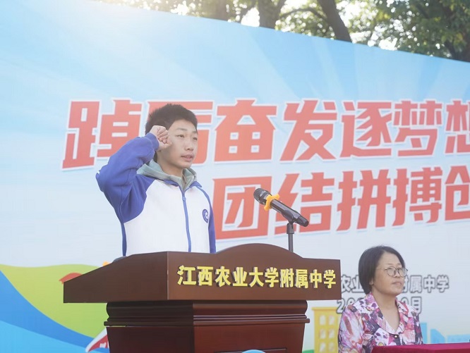 随后,各班级代表队迈着整齐划一的步伐,高喊着响亮的口号,展现着附中学子们青春的活力与班级的风采。紧接着,运动员代表和裁判员代表分别上台宣誓,他们承诺将严格遵守比赛规则,秉持公平、公正、公开的原则,确保运动会的顺利进行。