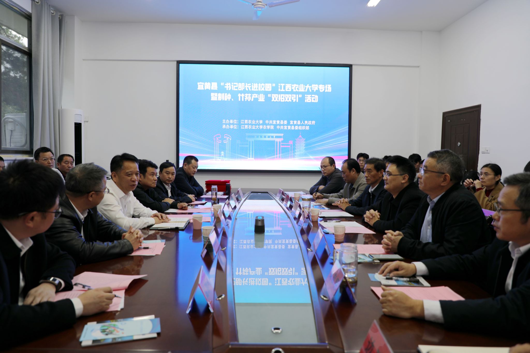 杜晓良从生态环境建设、山水人文底蕴、特色农业塑造等方面介绍了宜黄县县情,解读了制种、竹荪产业的发展现状及未来规划,回顾了宜黄与江西农大的深厚友谊与合作渊源,并就产业布局规划、高水平人才招引、科研成果转化、校地优势互补等方面提出了合作期望。