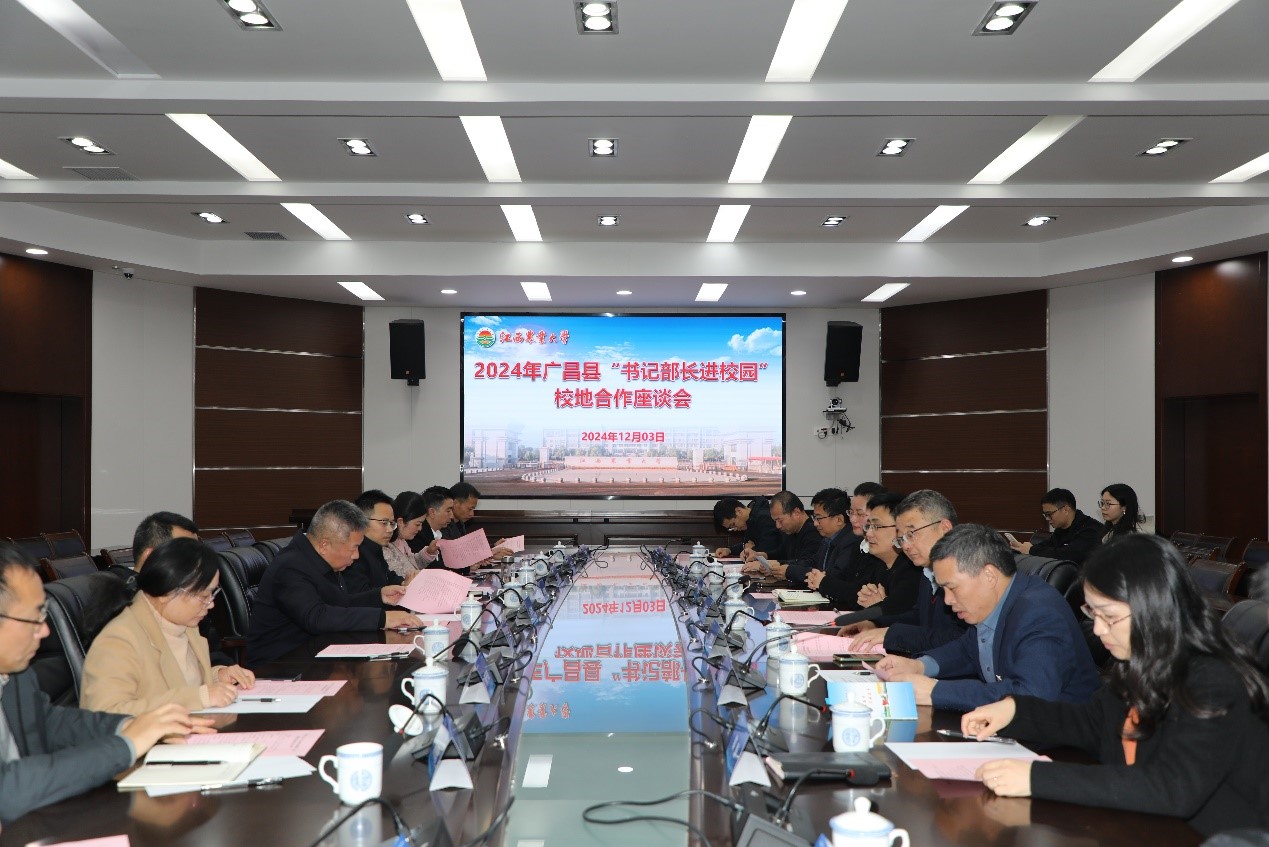 随后,在校行政楼二楼圆形会议室举行了广昌县“书记部长进校园”校地合作座谈会。会上,广昌县政府、企业和专家学者代表分别作交流发言,双方重点围绕科技创新攻关、成果转化应用等内容开展校地校企合作进行了深入探讨。伟德工学院与广昌县人民政府签订了战略合作协议。双方均表示将以此次活动为契机,强化人才培养合作,深化科技创新合作,加速成果转化应用,共同推动广昌县绿色农林产业发展,共创校地合作新篇章。