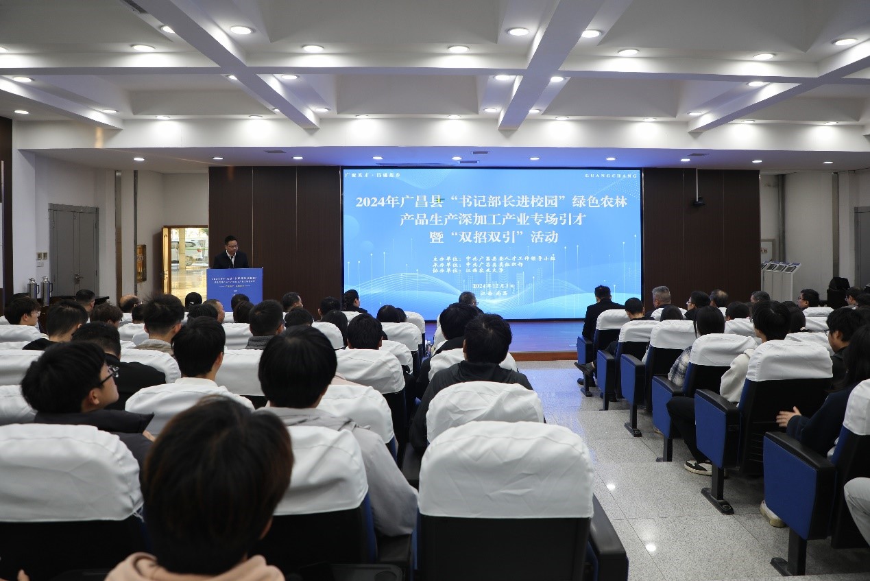 12月3日,广昌县委书记吴自胜、组织部部长梅明阳、副县长李军和科技局局长李智玲一行,来伟德开展广昌县“书记部长进校园”绿色农林产品生产深加工产业专场引才暨“双招双引”活动,伟德副校长张高亮、招生就业处、招标与采购中心、工学院、农学院负责人以及部分师生代表参加本次活动。梅明阳主持推介活动。