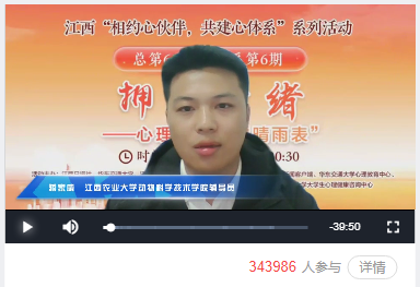 学院实施“本科生导师制”,为每一位本科生配备导师,做好思想引领、学业指导、学术科研的同时加强对学生人文关怀和心理疏导。专业教师充分发挥学科优势,积极参与心理健康教育研究与实践指导,将科研成果转化为教学资源,将科学研究中遇到困难到坚定方向的心路历程等巧妙融入专业课程教学之中,助力学生构建系统全面的知识体系与科学思维方式,从专业学习角度引导学生树立正确的心理健康观念。辅导员作为学生成长道路上的引路人,通过日常谈心谈话、定期心理健康筛查等方式,密切关注学生心理变化,及时察觉并妥善处理心理问题。其中,辅导站一名辅导员参加了由江西日报社、华东交通大学、江西省学校心理健康教育中心联合主办的“相约心伙伴,共建心体系”全省直播访谈活动,吸引了三十余万人次观看,进一步提升了学院心理健康教育的知名度和影响力。