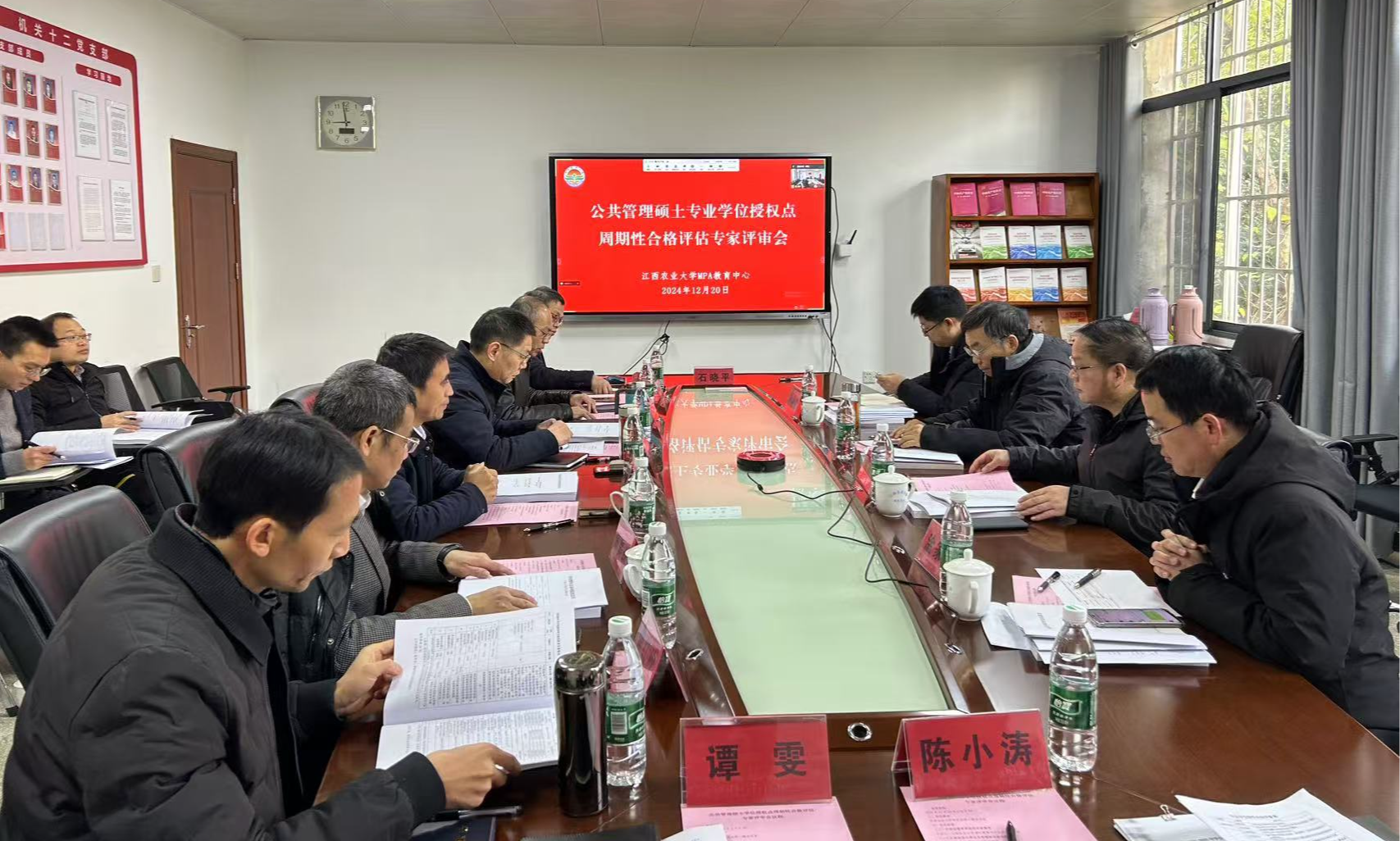 12月20日,bevictor伟德国际1946官网公共管理硕士学位授权点周期性合格评估专家评审会在致达楼召开。全国MPA教指委委员、南京农业大学石晓平教授,原中共江西省委党校一级巡视员廖清成教授,江西财经大学财税与公共管理学院院长张仲芳教授,江西省自然资源权益与储备保障中心洪土林高级工程师,江西师范大学公共管理硕士教育中心主任淦家辉副教授,对伟德公共管理硕士学位授权点建设开展评估工作。伟德副校长王文君教授,研究生院负责人,MPA学位点负责人,研究生院、MPA教育中心相关人员和老师参加了评审会。会议由MPA教育中心负责人主持。