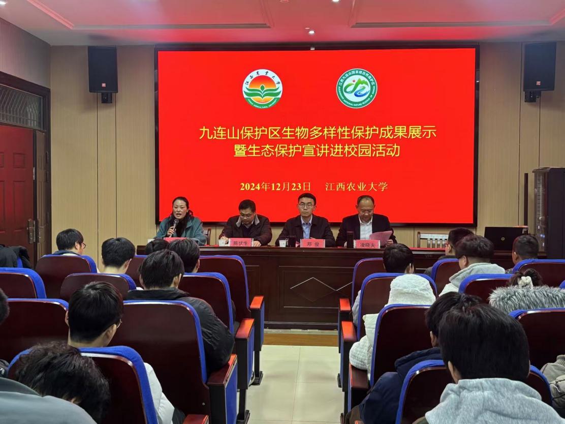 12月23日,九连山国家级自然保护区在林学院/园林与学院开展生物多样性宣讲进校园活动暨人才招聘宣讲会。九连山保护区局长邓俊、副局长凌晓夫、林学院负责人以及部分师生代表参加本次活动。