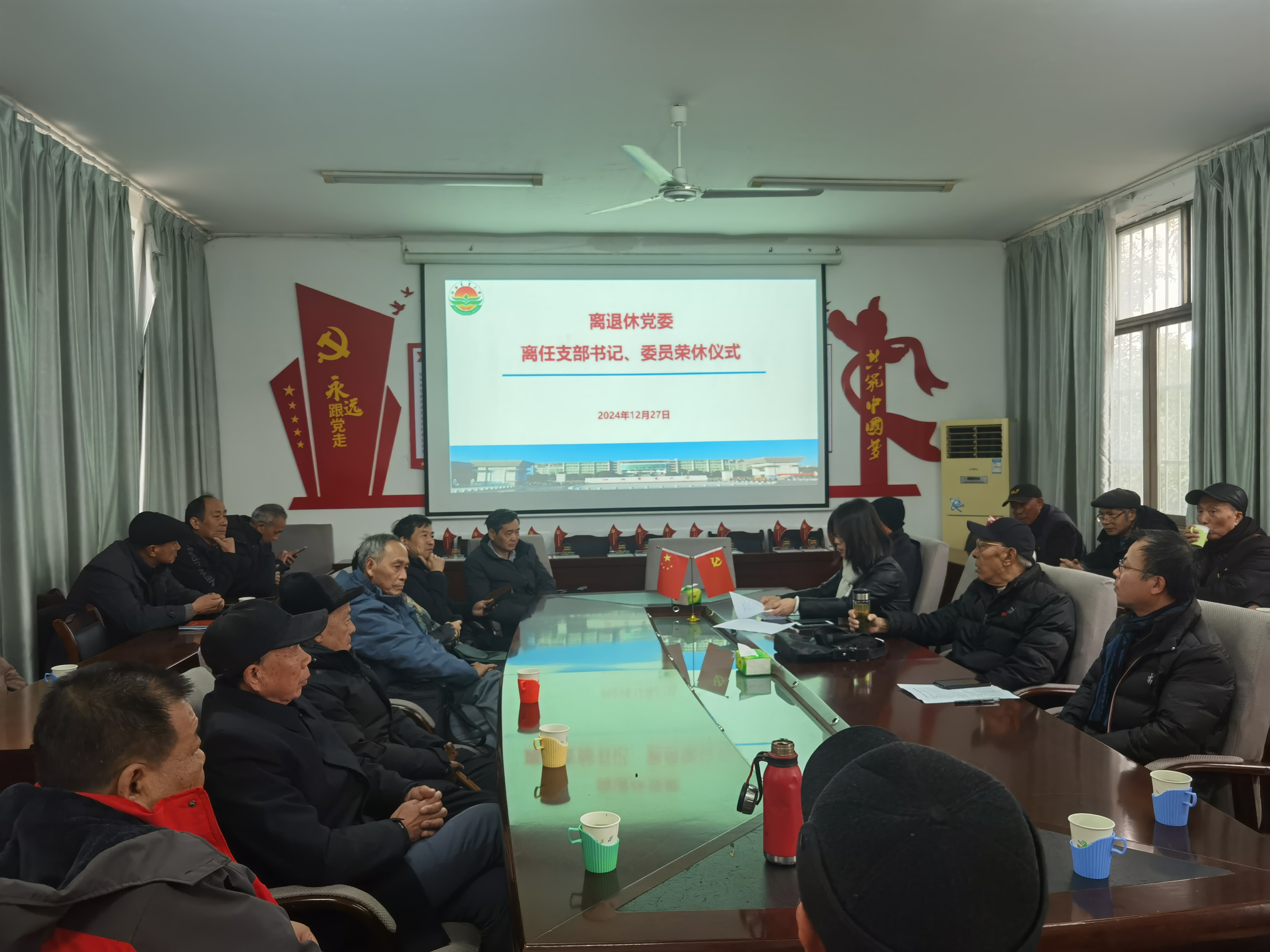 12月27日,离退休党委为各退休支部任期届满的14位离任支部书记、委员举办了一场暖心、温馨的荣休仪式,为他们颁发了特制的荣休纪念牌和感谢信。离任的支部书记代表樊南昌同志、新上任的支部书记代表何后军同志分别作了发言。各退休支部现任及离任的书记、委员参加荣休仪式。