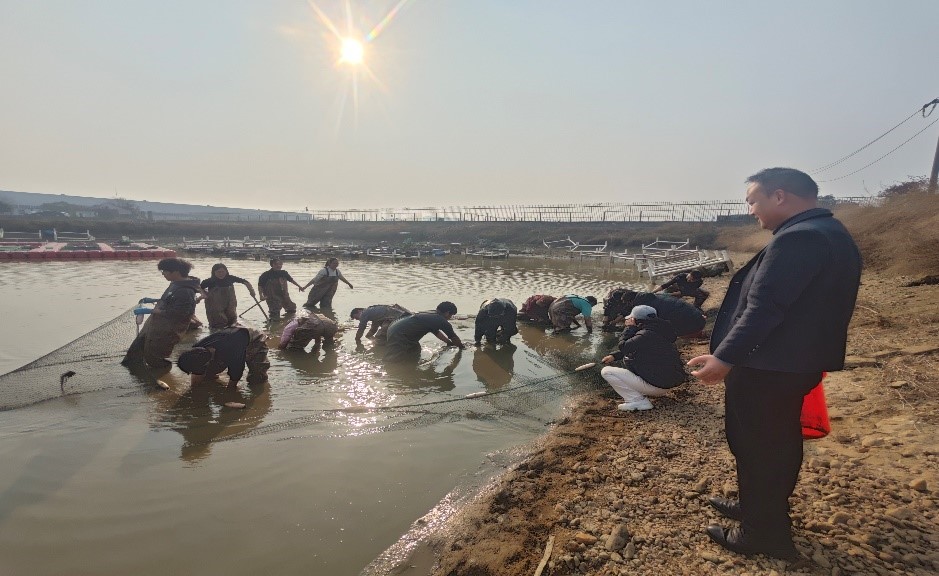 参赛师生们热情高涨,摩拳擦掌、跃跃欲试。“一二一,一二一......”一阵阵铿锵有力、整齐划一的口号声在鱼塘边回荡,捞网挥动,喊声高亢,鱼跃人欢。老师们凭借丰富的经验和沉稳的心态,学生们则以灵活的身手和满腔的热情,在大家齐心协力下,大网渐渐收紧,一条条鲜活肥硕的鱼儿跃出水面,溅起一片片水花,欢声笑语在鱼塘上空久久回荡。