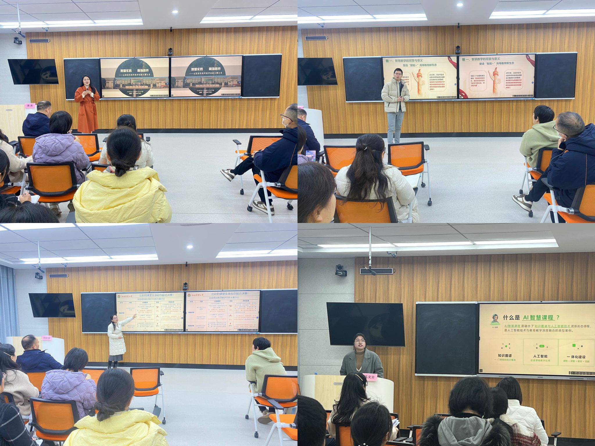 本次培训邀请了多位全国高校教师教学创新大赛国赛一等奖获得者和AI课程建设专家作专题报告,华南农业大学张世海副教授以动物营养学课程为例,展示了 “人工智能赋能教学创新” 的实践应用,为教学创新提供了新思路;伟德黄英老师和向妙莲教授分别围绕 “智慧实践 闭环培养 — 全国教学创新大赛新农科赛道”和“‘四新’建设背景下高校教师教学创新大赛实战经验分享” 展开讲解,为教师们提供了宝贵的参赛经验;智慧树金课咨询师高文芳以 “知识图谱 + 人工智能 —AI 智慧课程引领未来” 为主题,详细讲解了 AI 课程建设的关键技术与方法。