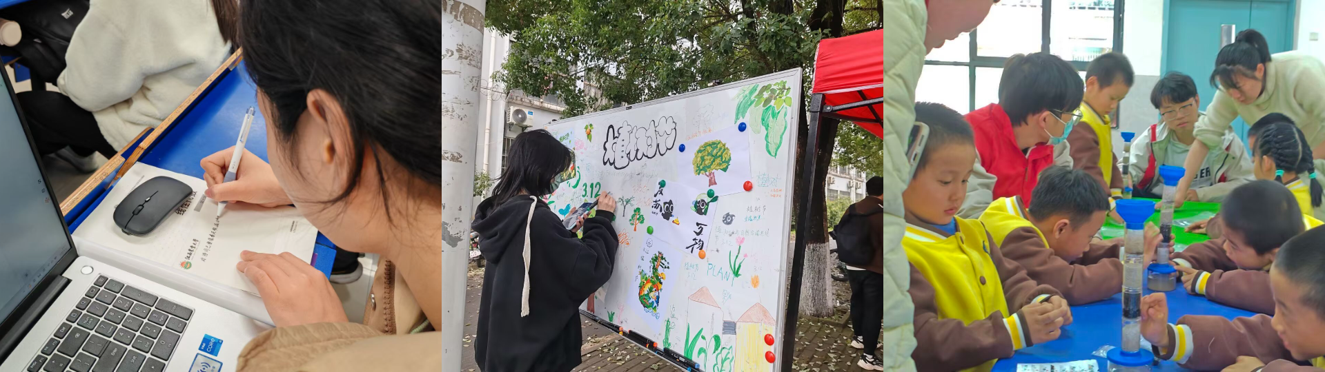 播撒绿色希望,共筑生态长城。3月12日植树节,学院绿源协会准备了精美的卡片与马克笔邀请同学写下植树节标语与体会,卡片挂在活动现场的展示架上,绿意将就此长存;3月18日下午,绿源社组织志愿者们走进保育院,向小朋友们宣传节水知识,制作净水装置,开展了系列环保主题活动。
