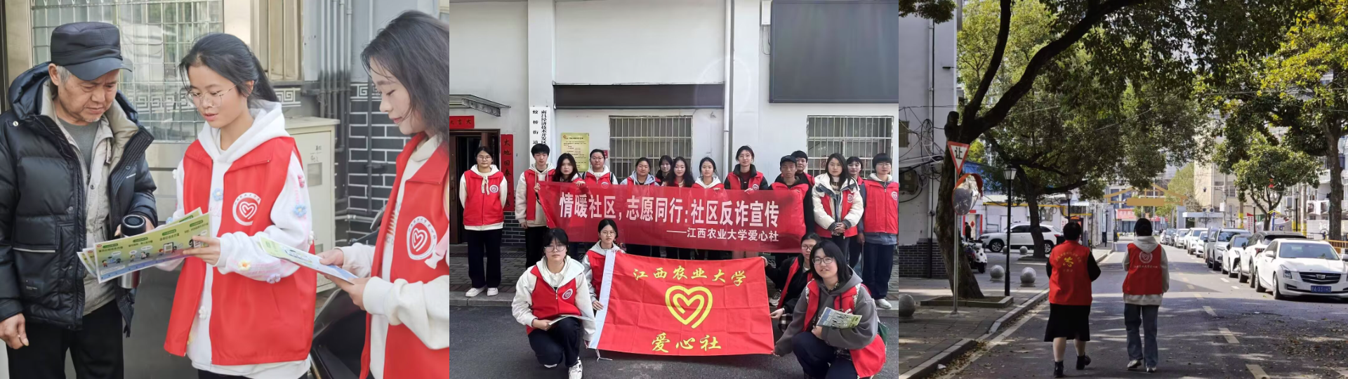 反诈宣传入户,清洁行动惠民。老教授家中、舍里甲老年活动中心,学院爱心社正在开展暖心志愿服务活动。志愿者们手持扫帚,将社区里堆积的落叶、杂物一一清理干净。随后,同学们通过发放宣传单、现场讲解和案例分析向居民普及防范电信诈骗的知识,来帮助社区居民提高了防诈骗意识。活动中,志愿者们与老人们热情互动,大家沉浸在欢声笑语里,感受着志愿者们带来的快乐和温暖。