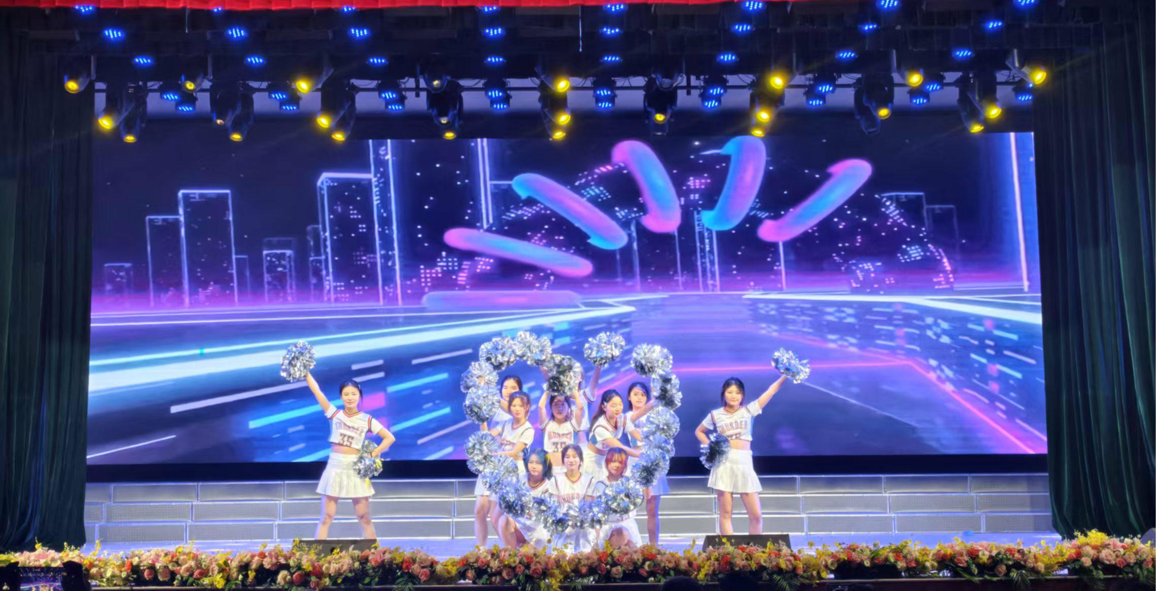 当晚的大礼堂灯火璀璨,座无虚席。伴随着动感音乐,各学院代表队依次登台,以精心编排的啦啦操演绎青春故事。舞步整齐划一,队形变幻如虹,高难度的托举、空翻与极具创意的主题设计引得观众掌声雷动。工学院代表队用机械的精准与工程的力度,演绎“力与美”的融合,为百廿江农"锻造"青春火花;动科院代表队的同学们旋转跳跃如骏马奔腾,似雏鹰展翅,用活力诠释“厚德博学 抱朴守真”的江农精神;计信院的同学们用"代码"编写啦啦操的算法,舞出数字时代的青春逻辑……