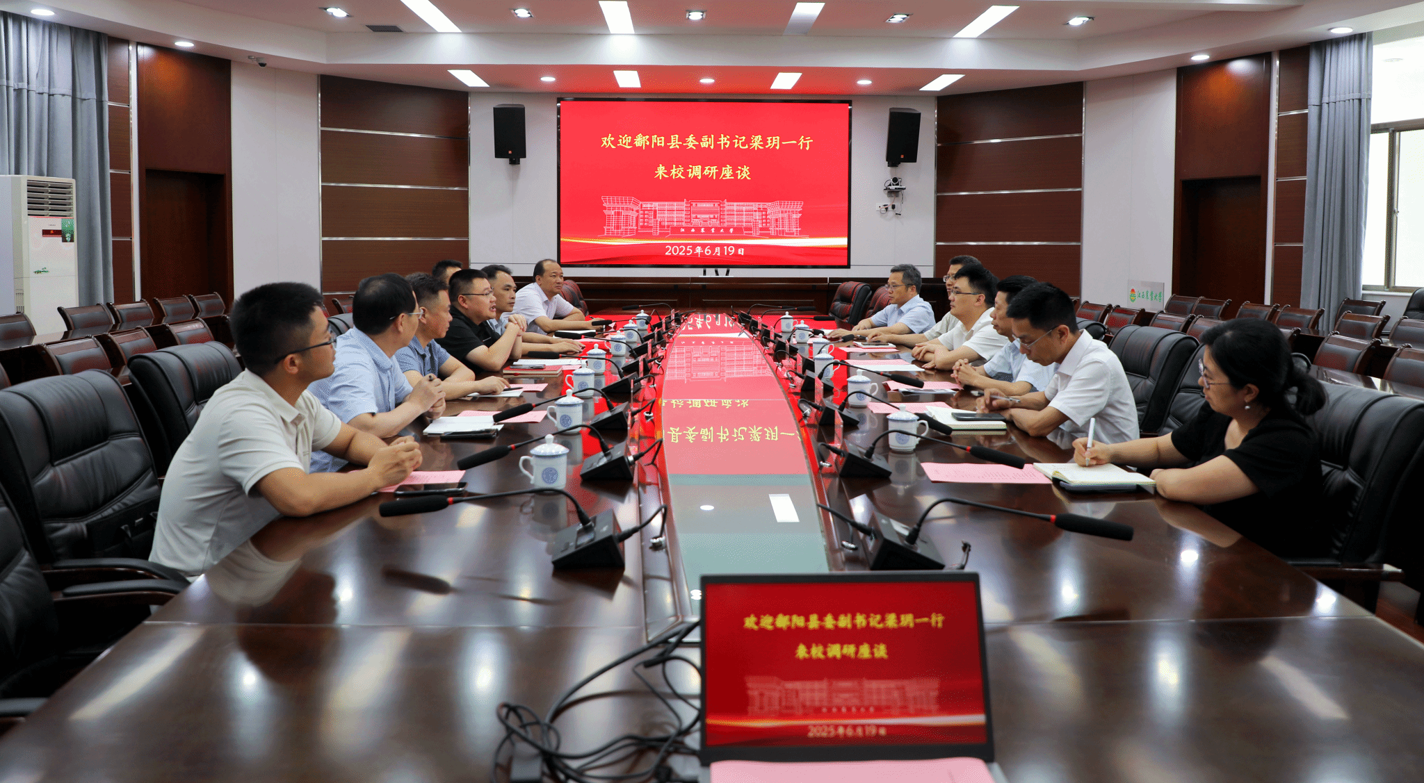 6月19日上午,鄱阳县委副书记梁玥一行来校调研交流。副校长张高亮、游金明,党办校办、科技处、农学院、动物科学技术学院负责人参加座谈。