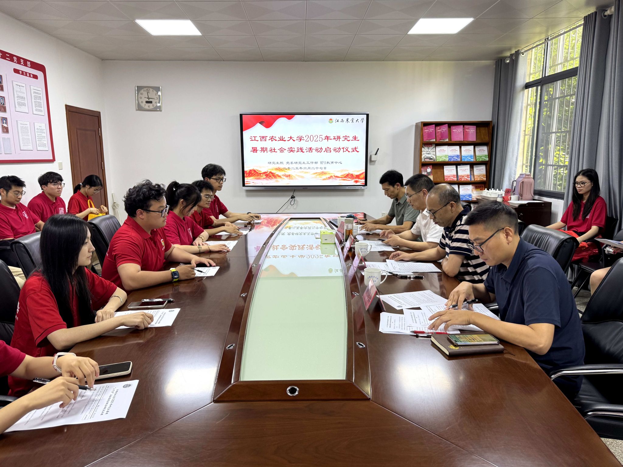 启动仪式上,党委研究生工作部办公室介绍了2025年研究生暑期“三下乡”活动组织筹备情况并宣布各立项营队及负责人名单。实践营队代表卢佳同学作表态发言。
