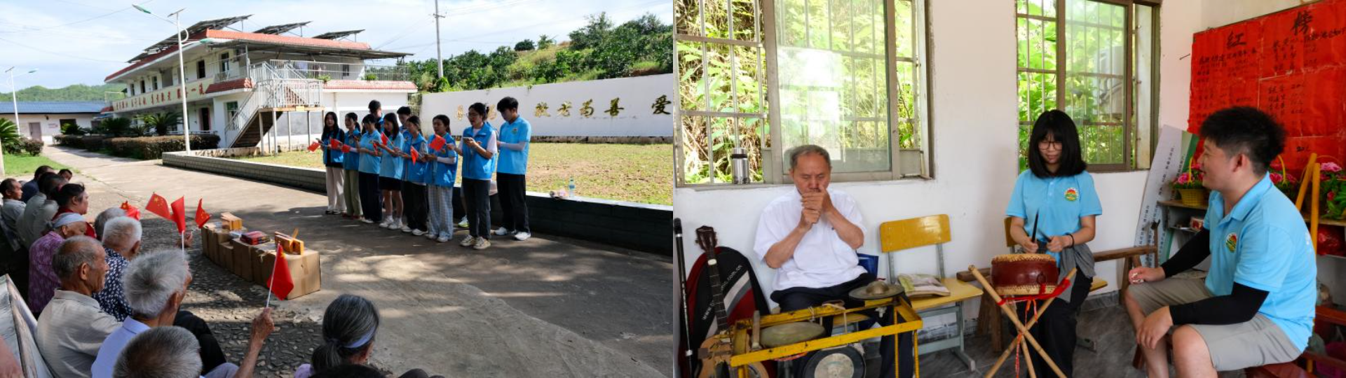尊老为德,敬老为善、爱老为美,助老为乐,实践队围绕“银龄关怀”开展丰富多彩的敬老服务活动,为当地老人送上一抹关怀。在新水塘村“一老一小”幸福院中,队员们围坐在老人身旁,与老年艺术团成员亲切交流,欣赏节目表演,聆听民俗文化,跟随老艺人学唱戏、唠家常、唱红歌,以文化传承为纽带丰富老年人精神生活。在长安村敬老院,实践队携手当地政府共同开展慰问活动,队员之间分工合作,搬运物资、打扫卫生、表演节目、调研访谈…笑声回荡,一支支小曲、一次次倾听,把青春关怀送进老人心坎的同时,也让大家读懂了“老有所依”的深刻内涵。