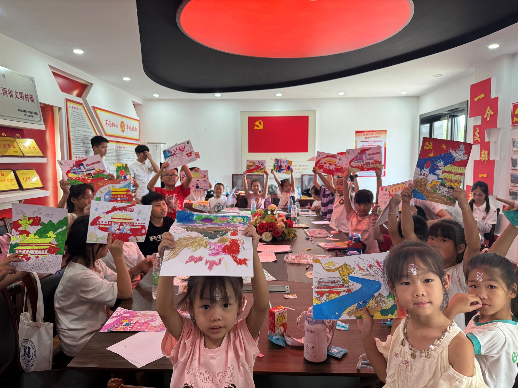 化材院“薪火逐梦”实践团在南昌厚溪村用艺术激活红色记忆。队员们带领小朋友绘制“红色画报”,井冈山的星火、长征路上的草鞋、天安门的红旗……“我画了天安门和放飞的气球,希望祖国越来越强大!”孩子开心地说到。画笔勾勒的不仅是图案,更是历史脉络。“我爱你青松气质,我爱你红梅品格;我爱你家乡的甜蔗,好像乳汁滋润着我的心窝……”团队还组织“红歌传唱”活动,《映山红》《没有共产党就没有新中国》的童声在村庄回荡,红色旋律成为最生动的教材。