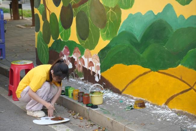 校团委“强国有我 青春有为”实践队走进南昌市安义县乔乐乡,用画笔守护红色记忆为乡村描绘出一幅绚丽多彩画卷,在社坑村的毛主席与红军战士雕塑群前,实践队员们正手持画笔专注地忙碌着。阳光下,雕塑群中迎风飘扬的党旗历经风雨已略显褪色,队员们用赤红颜料细细勾勒旗面纹路,让象征信仰的党旗重焕鲜亮。在乔乐乡农贸集市入口进用用画笔为乡村描绘出一幅绚丽多彩画卷。乔乐乡物产丰富,特色鲜明。实践队在设计墙绘内容时,巧妙地将当地的猕猴桃、草莓、樱桃、柚子、冰糖橙等特色农产品以及西二环、梅岭高速等元素融入其中。这些元素不仅是乔乐乡的“名片”,更是乡村振兴的“密码”。队员们精心构思,认真描绘。“我们希望通过墙绘,让更多人了解乔乐乡的特色,吸引大家关注这里的发展。”。人文院组织音乐学专业学生开展了“送戏下乡”文艺活动,将红色文化与歌舞形式结合。声乐节目《如愿》用歌声传承红色记忆;舞蹈《枫叶红了》展现民族艺术魅力;原创音乐剧《党章守护者》通过沉浸式表演再现党史故事……多样的节目传递了红色文化的魅力,进一步推动了文化惠民服务落到实处,让基层群众共享文化发展成果。