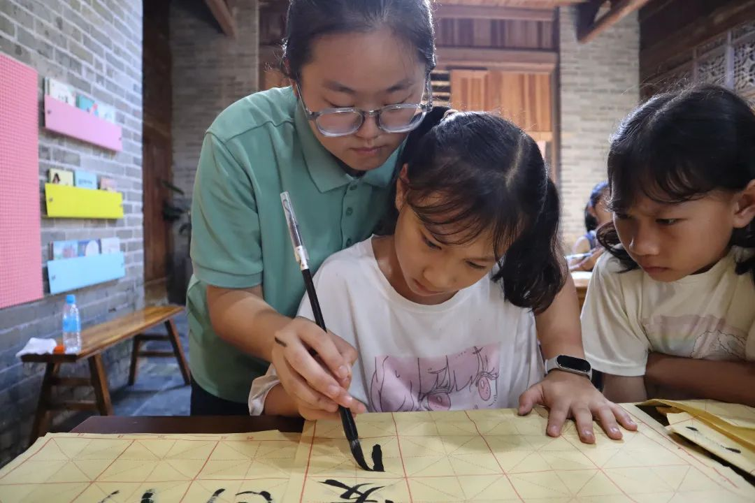 大余县杨梅村的书法课上,“微光童行”团队成员正教孩子们临摹“青年寄语”。“一横一竖要稳,就像做人要正。”队员的话让孩子们若有所思。扎染课上,素布在孩子们手中变成绚丽图案,“这是我的作品,回去要送给爷爷奶奶!”稚嫩的声音里满是骄傲。