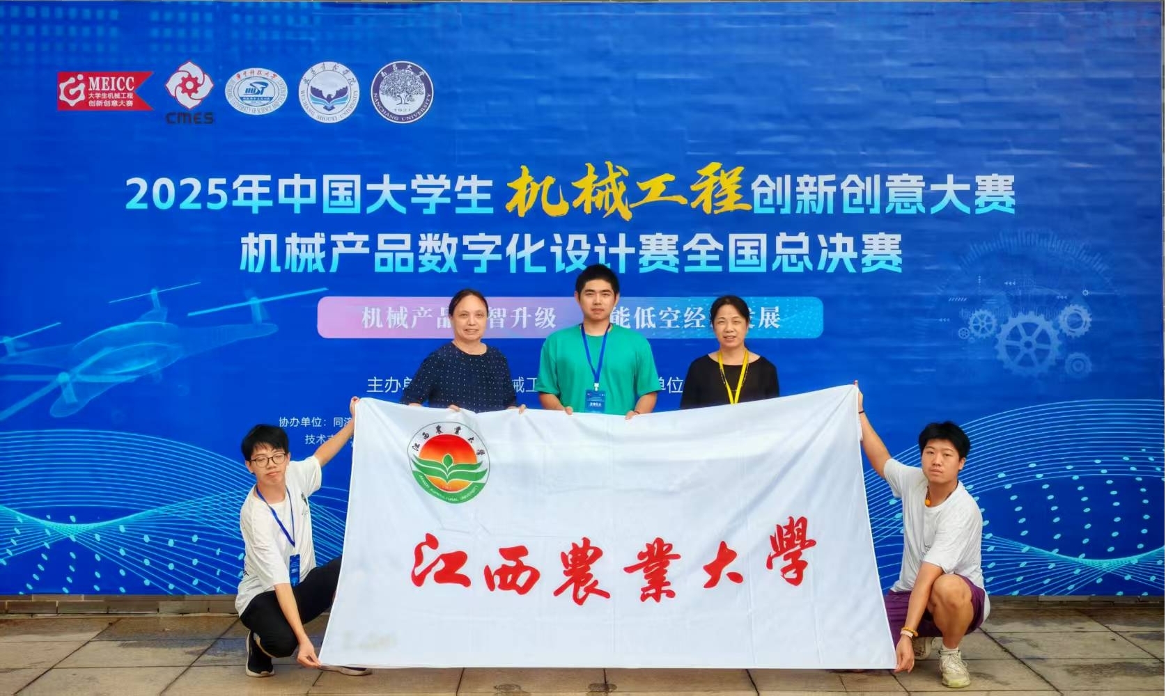 8月21至22日,2025年中国大学生机械工程创新创意大赛机械产品数字化设计赛在南昌大学举办。大赛以“机械产品数智升级,赋能低空经济发展”为主题,吸引全国高校2571支队伍参赛。学院两件作品脱颖而出,其中《与无人机联合作业的野生植物采收装置》获一等奖(最高奖项),《无人机智喷授粉》获三等奖。