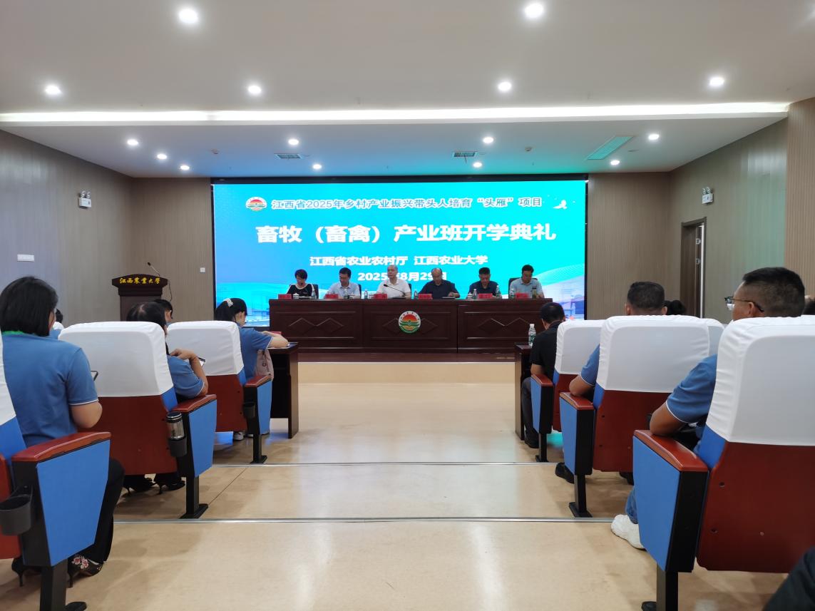 8月29日上午,江西省2025年乡村产业振兴带头人培育“头雁”项目畜牧(畜禽)产业专题班在伟德开班。江西省农业农村产业发展服务中心主任罗锋,伟德副校长刘木华、继续教育学院负责人,全体“头雁”学员等80余人出席开班仪式。
