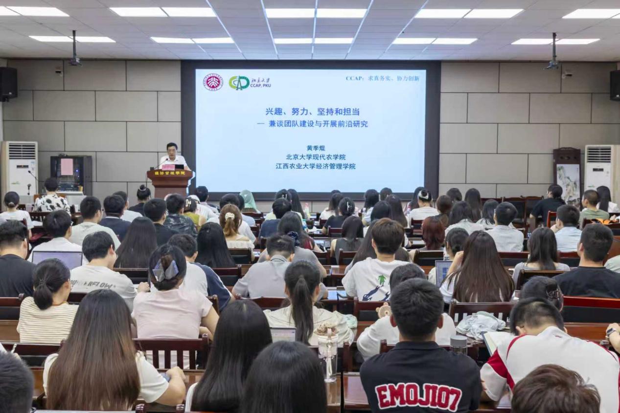 9月16日,经管学院硕博研究生同上“开学第一课”。由北京大学现代农学院院长、发展中国家科学院院士、中国农业政策研究中心(CCAP)主任、经管学院名誉院长、江西省乡村振兴战略研究院院长黄季焜教授在经世楼207为经管学院硕博研究生作专题学术报告。农林经济管理学科点负责人主持会议。经管学院院领导、200余名硕博研究生现场共同聆听学术报告。