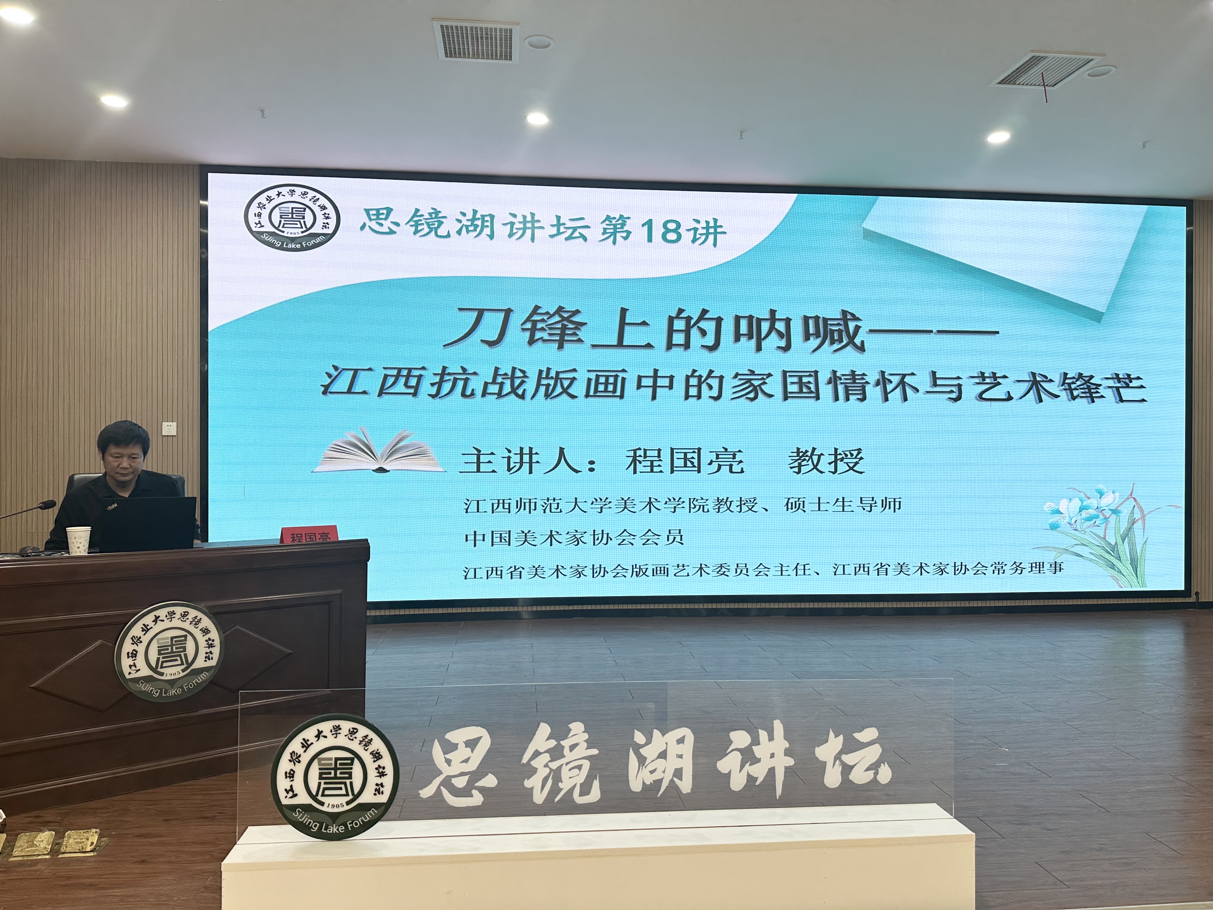 9月23日,学校思镜湖讲坛邀请江西师范大学美术学院程国亮教授,作题为《刀锋上的呐喊——江西抗战版画中的家国记忆与艺术锋芒》的专题讲座,带领师生深入感受抗战时期木刻艺术的精神力量。