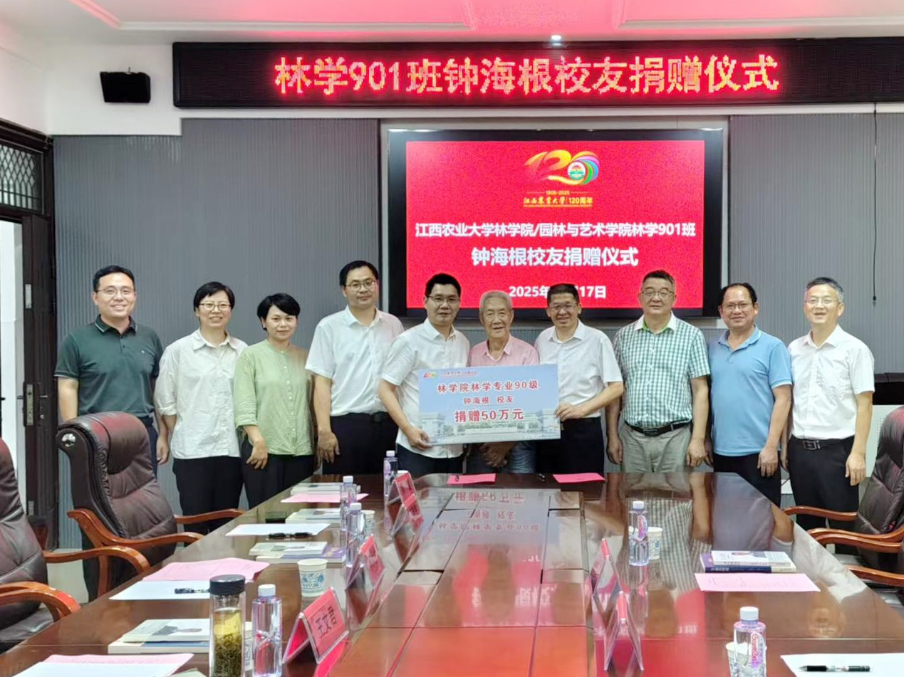 10月17日,林学院/园林与艺术学院举行“同庆百廿兴农伟业,再谱助学强林华章”校友捐赠仪式暨校友企业家报告会活动。林学90级1班校友、江西平安有限公司总监钟海根,副校长王文君、陈伏生,国家教学名师、原副校长杜天真,校教育基金会、校友工作服务中心、林学院/园林与艺术学院负责人及师生代表80余人参加了此次活动。校友钟海根个人向学校捐赠50万元资金,用于林学学科建设与发展。